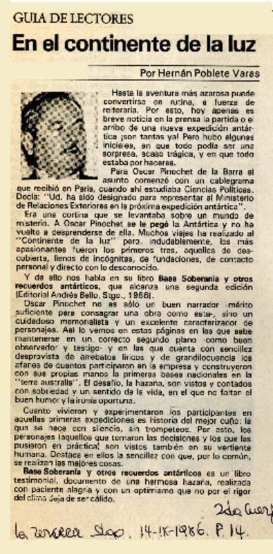 En el continente de la luz [artículo] Hernán Poblete Varas.