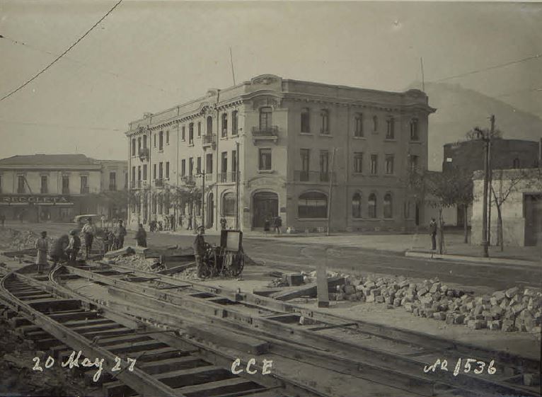 [Instalación de rieles en Santiago] : [fotografía] Chilectra.