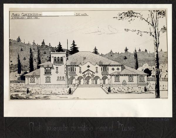 [Album Museo de Historia Natural de Concepción]: Ante-Proyecto Museo, Primer Piso, frente Parque Ecuador [Autor: Arquitecto A[rnoldo] Michaelsen] [fotografía]