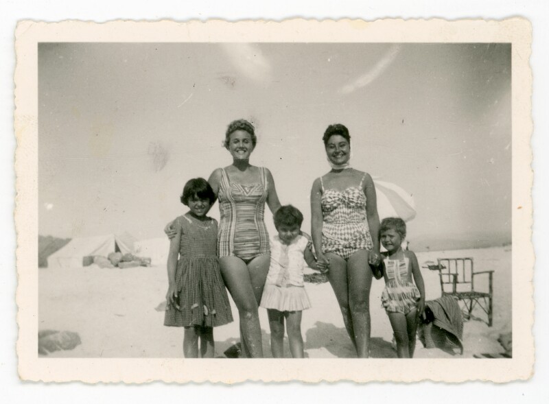 [Retrato de un grupo de mujeres en la playa] [Fotografía].