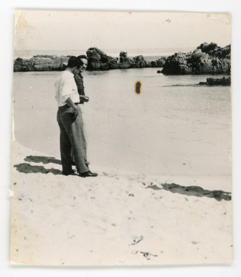 Dos jóvenes en la playa "Las Piscinas" [Fotografía].