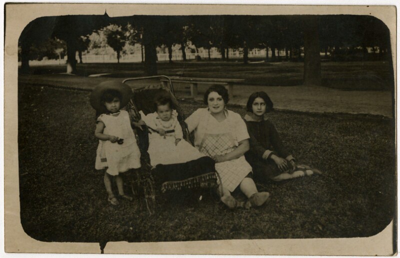 [Mujer con niña de meses en los brazos y junto a una joven en la Quinta Normal] [fotografía].