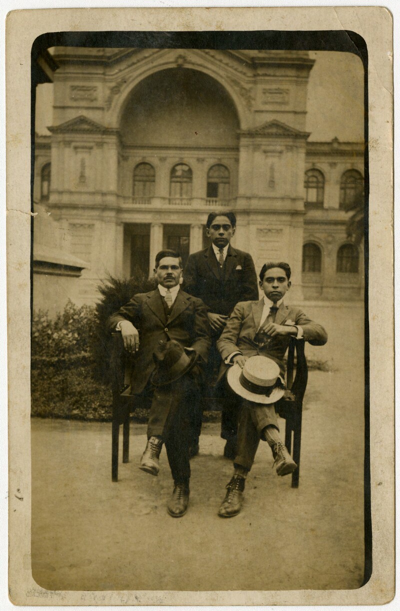 [Hombres de espalda al Museo de Historia Natural] [fotografía].