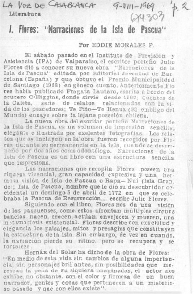 J. Flores, "narraciones de la Isla de Pascua" [artículo] Eddie Morales Piña.