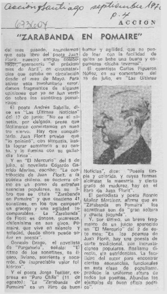 Florit: zarabanda en Pomaire [artículo] Edgardo Garrido Merino.