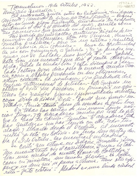 [Carta] 1952 oct. 19, Torremolinos, Málaga, [España] [a] Doris Dana, New York, [Estados Unidos] [manuscrito] Marina [Núñez del Prado].