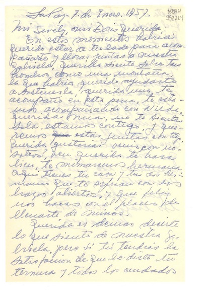 [Carta] 1957 ene. 7, La Paz, [Bolivia] [a] Doris Dana [manuscrito] Marina Núñez del Prado.