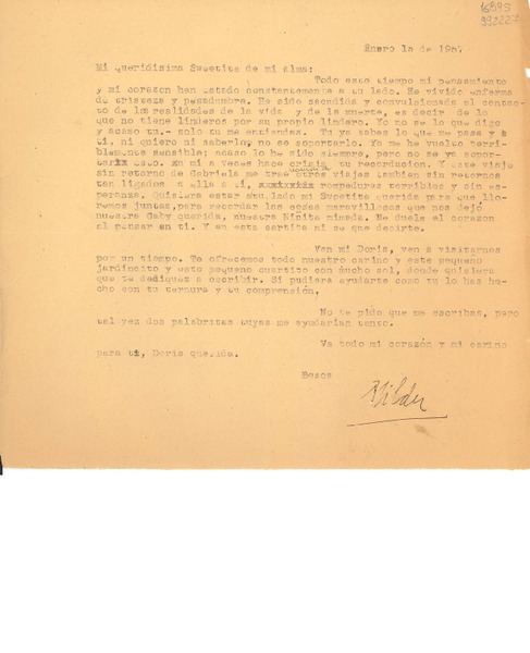 [Carta] 1956 ene. 6 [a] Doris Dana [manuscrito] Nilda [Núñez del Prado].