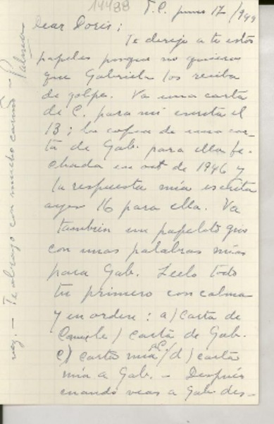 [Carta], 1957 dic. 24, México [a] Doris Dana, [New York] [manuscrito] Palma Guillén de Nicolau.