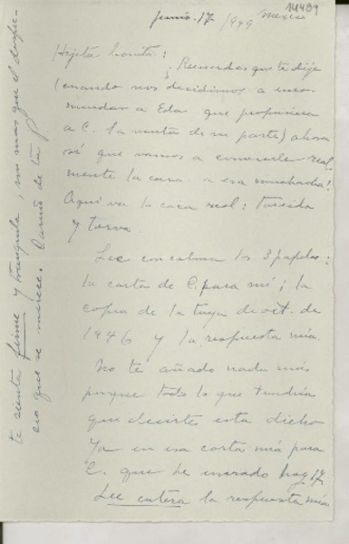 [Carta] 1949 jun. 17, México [a la] Hijita bonita [manuscrito] [Palma Guillén].