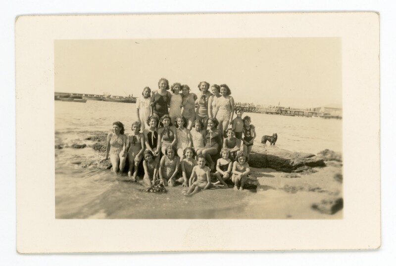 [Grupo de mujeres y niñas en la playa] [Fotografía].