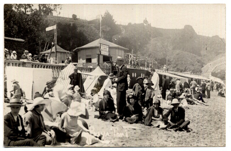 [Adultos y niños en una playa de Tomé] [fotografía].