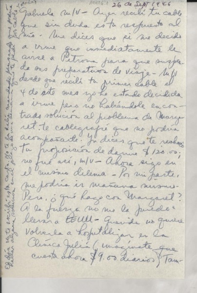 [Carta] 1946 sept. 26 [a] Gabriela [Mistral] [manuscrito] [Consuelo Saleva].