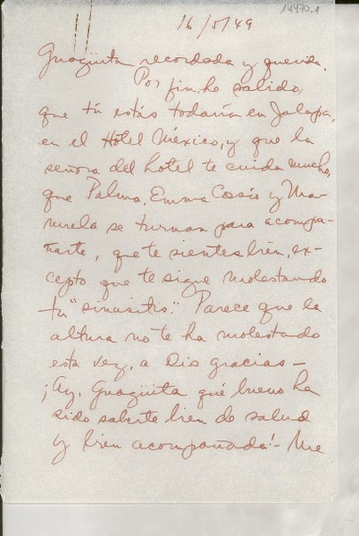 [Carta] 1949 mayo 16 [a la] Guagüita recordada y querida [manuscrito] [Consuelo Saleva].