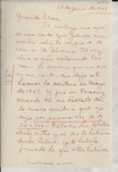 [Carta] 1949 jun. 13 [a la] Querida Palma [manuscrito] [Consuelo Saleva].