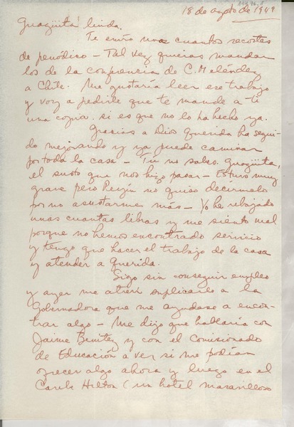 [Carta] 1949 ago. 18 [a la] Guagüita linda [manuscrito] [Consuelo Saleva].