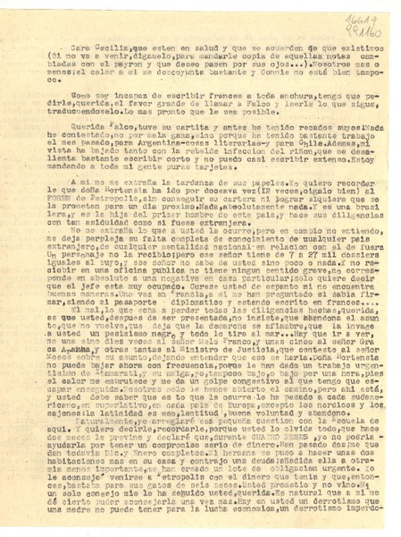 [Carta] 1944 set. 10, Río [de Janeiro] [a] Gabriela Mistral [manuscrito] Cecilia [Meireles].