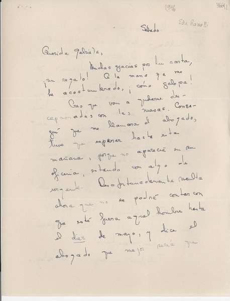 [Carta] [1946] [a] Gabriela [Mistral] [manuscrito] Eda [Ramelli].