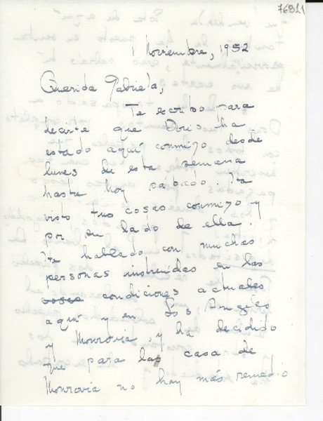 [Carta] 1952 nov. 1, [Estados Unidos] [a] Gabriela Mistral [manuscrito] Eda [Ramelli].