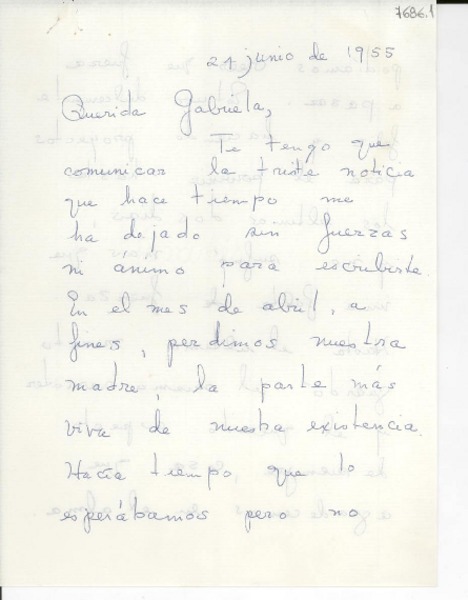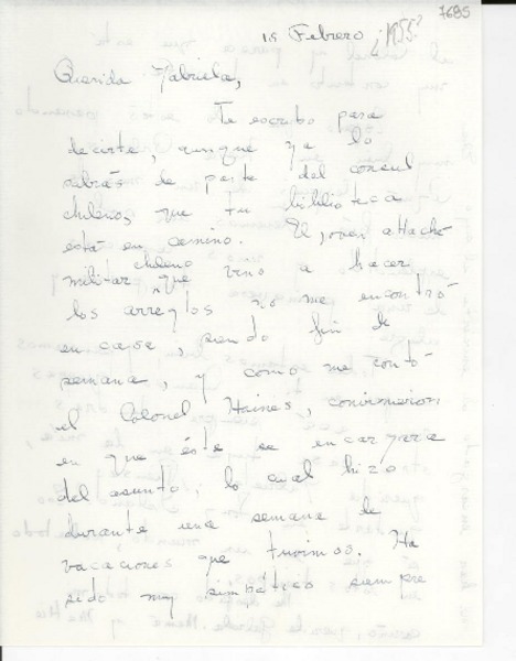 [Carta] 1955 feb. 15, [Estados Unidos] [a] Gabriela Mistral [manuscrito] Eda [Ramelli].