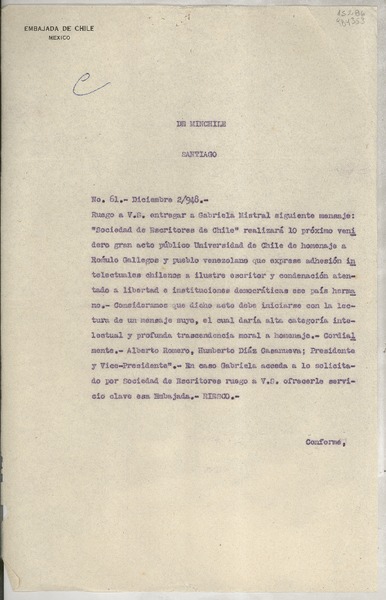 ![[Carta] 1948 jul. 16, República de Chile, Ministerio de Relaciones Exteriores, Santiago, Chile [a] Doña Gabriela Mistral, Cónsul de Chile en Santa Bárbara, [EE.UU.] [Carta] 1948 jul. 16, República de Chile, Ministerio de Relaciones Exteriores, Santiago, Chile [a] Doña Gabriela Mistral, Cónsul de Chile en Santa Bárbara, [EE.UU.]](channels-535_mime_jpg.gif)