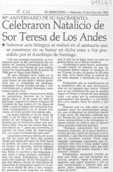 Celebraron natalicio de Sor Teresa de los Andes. [artículo]