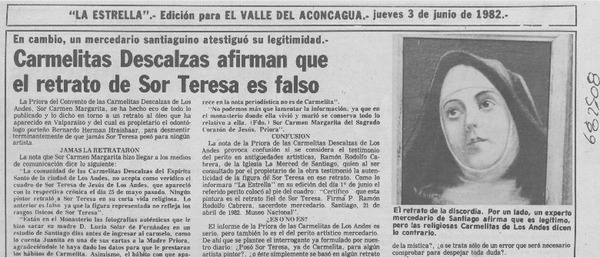Carmelitas descalzas afirman que el retrato de Sor Teresa es falso. [artículo]