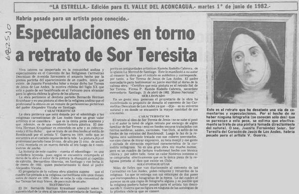 Especulaciones en torno a retrato de Sor Teresita. [artículo]