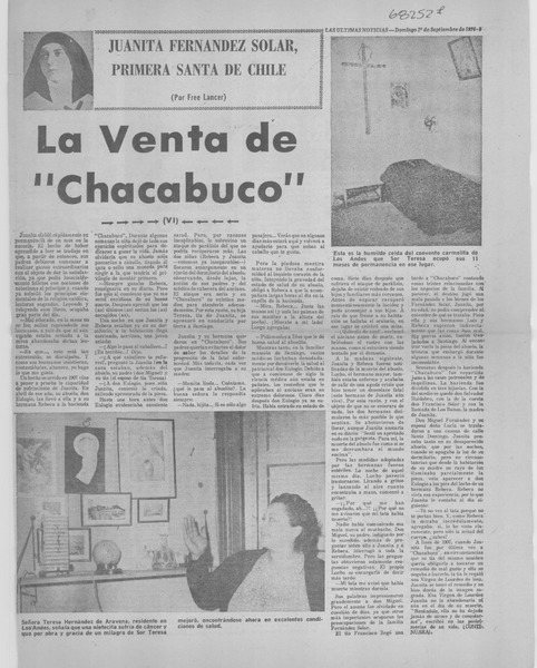 Una chilena a punto de ser santa [artículo] Guillermo Sandoval.