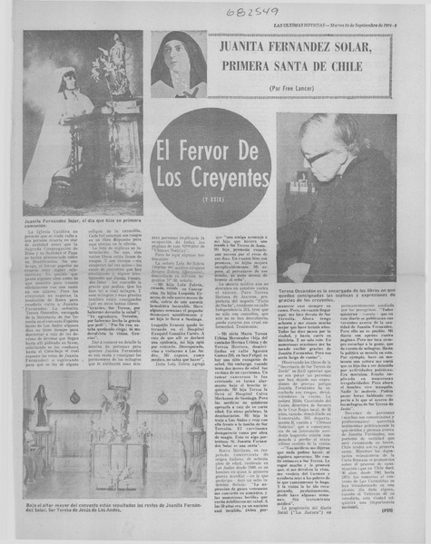 Una santa para Chile [artículo] M. Isabel Fernández.