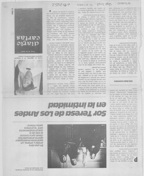 Editan "Diario y cartas" de Sor Teresa de Los Andes. [artículo]