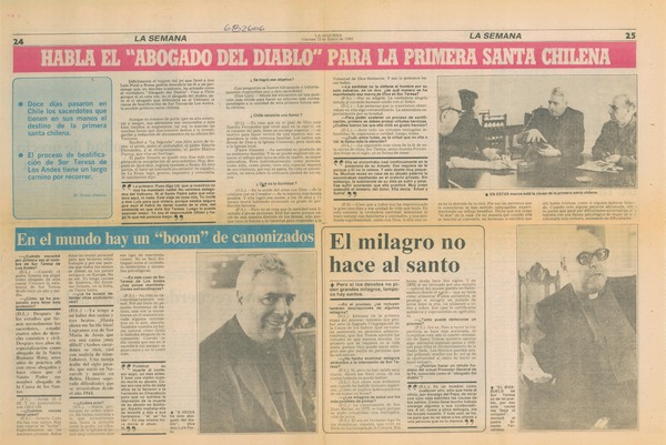 Habla el "abogado del diablo" para la primera santa chilena [artículo] M. Teresa Alamos.