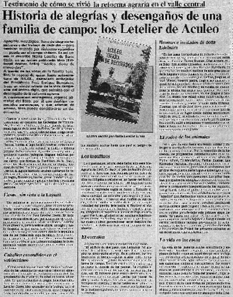Historia de alegrías y desengaños de una familia de campo, los Letelier de Aculeo [artículo].
