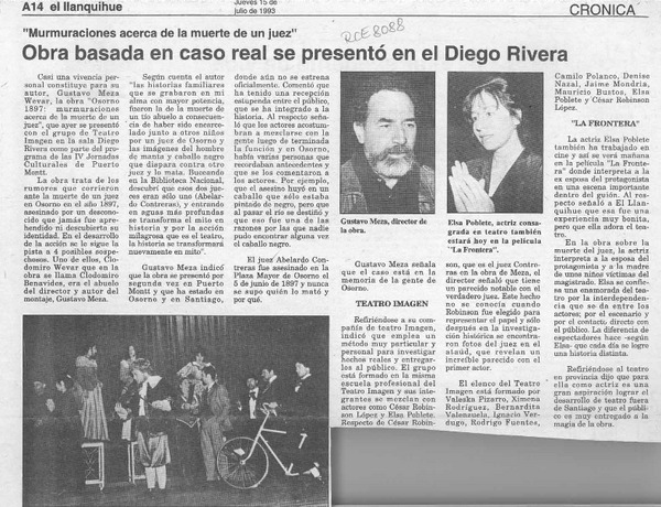La Muerte de un juez en Osorno recrea Teatro Imagen [artículo].