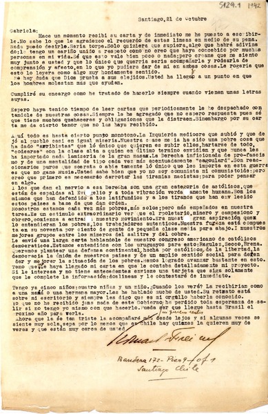 [Carta] [1942] oct. 21, Santiago, [Chile] [a] Gabriela Mistral [manuscrito] Eduardo Frei [Montalva].