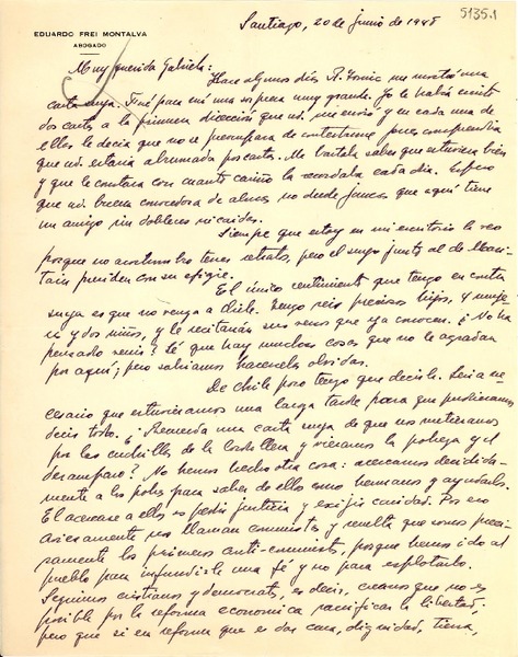 [Carta] 1948 jun. 20, Santiago, [Chile] [a] Gabriela Mistral [manuscrito] Eduardo Frei Montalva.