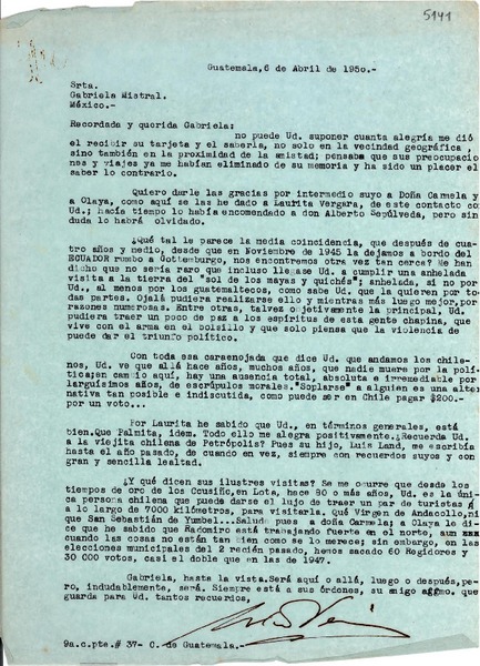 El remitente se entera de que Gabriela Mistral tiene la intención de viajar a Guatemala.