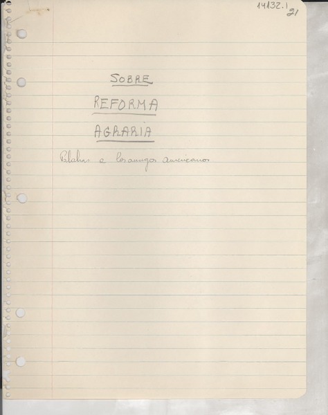 Sobre reforma agraria : palabras a los amigos americanos [manuscrito] Gabriela Mistral.