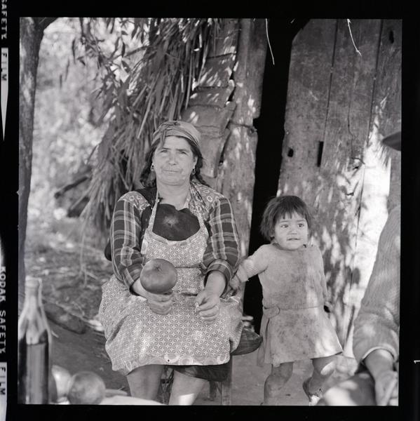 Mujer mapuche con un kultrú sentada afuera de su ruca en compañía de un niño. Tallados en madera, figuras de cerámica, collares de plata, máscaras y otros, todos trabajos de artesanía mapuche. Entrada a los campamentos Arnoldo Ríos y Lautaro. La entrada de ambos está plagado de afiches del Che y del Mir. En la organzición de los mapuches respecto de toma de tierras e instalación de campamentos, el MIR y el MCR jugaron un rol muy importante. Campamento Lautaro tierra o muerte venceremos Movimiento Campesino Revolucionario. Campamento "A. Rios" tierra o muerte venceremos Movimiento Campesino Revolucionario. Una mujer indígena que dentro de sus quehaceres de casa está alimentando gallinas
