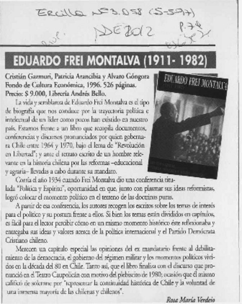 Los escritos de Eduardo Frei Montalva [artículo] Rodrigo Díaz Albónico.