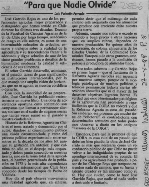 "Para que nadie olvide" [artículo] Luis Valentín Ferrada.