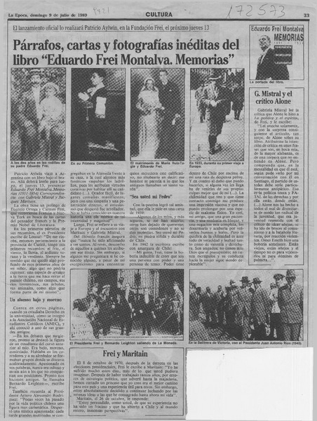 Párrafos, cartas y fotografías inéditas del libro "Eduardo Frei Montalva, Memorias" [artículo].