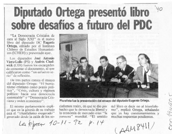 Diputado Ortega presentó libro sobre desafíos a futuro del PDC [artículo].