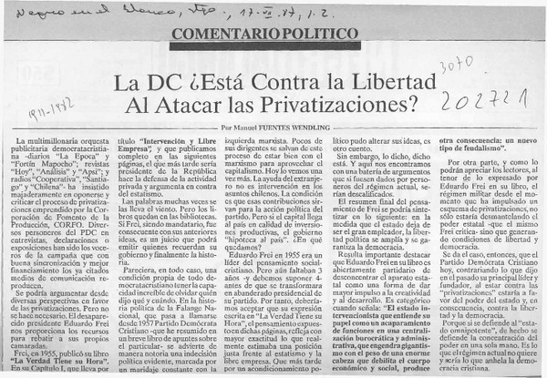 La DC Está contra la libertad al atacar las privatizaciones? [artículo] Manuel Fuentes Wendling.
