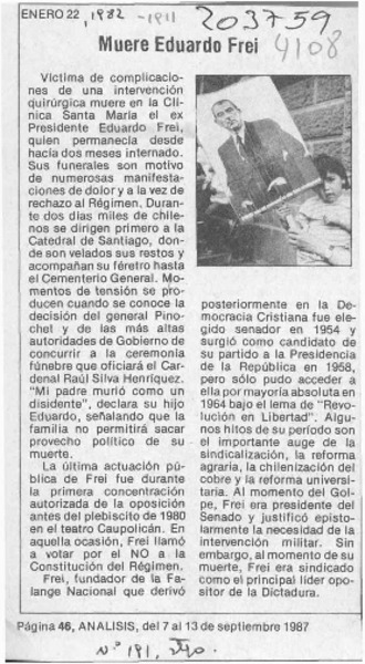 La muerte de Eduardo Frei Montalva [artículo] Cristián Gazmuri Riveros
