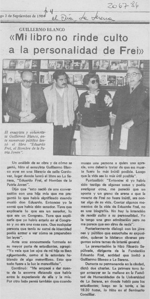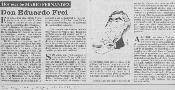 Mi libro no rinde culto a la personalidad de Frei [artículo].