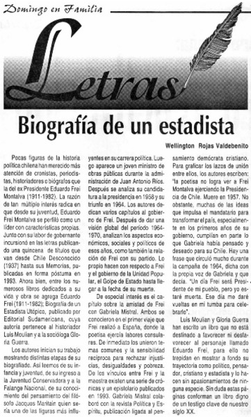 Comentario al libro "Eduardo Frei M. (1911-1982) biografía de un estadista utópico" de Luis Moulián y Gloria Guerra [artículo]