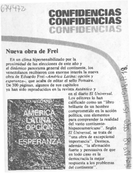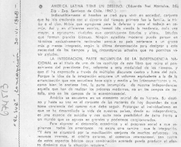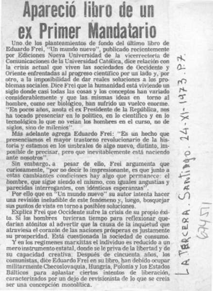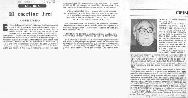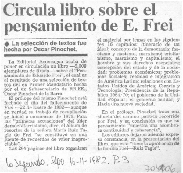 Circula libro sobre el pensamiento de E. Frei. [artículo]