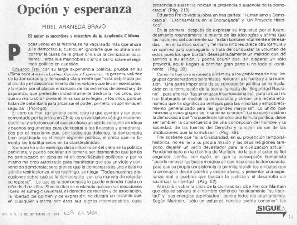 Opción y esperanza [artículo] Fidel Araneda Bravo.