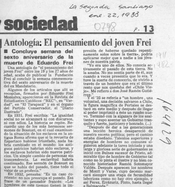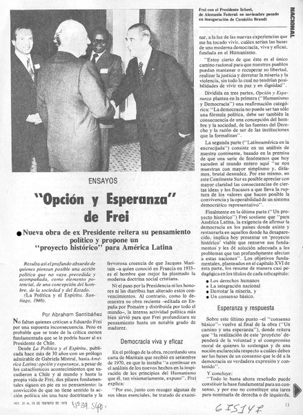Editaron libro con "el pensamiento de E. Frei". [artículo]